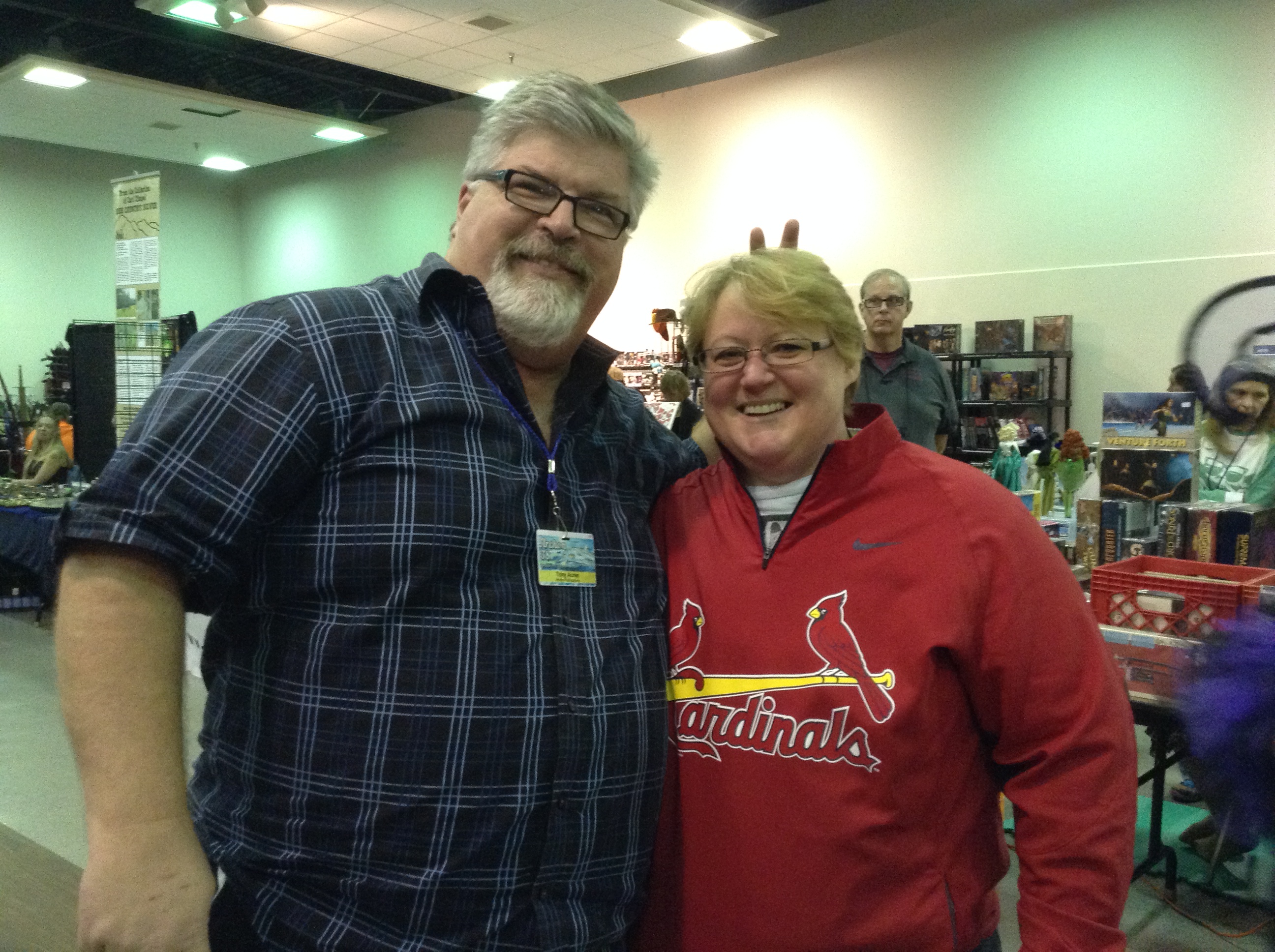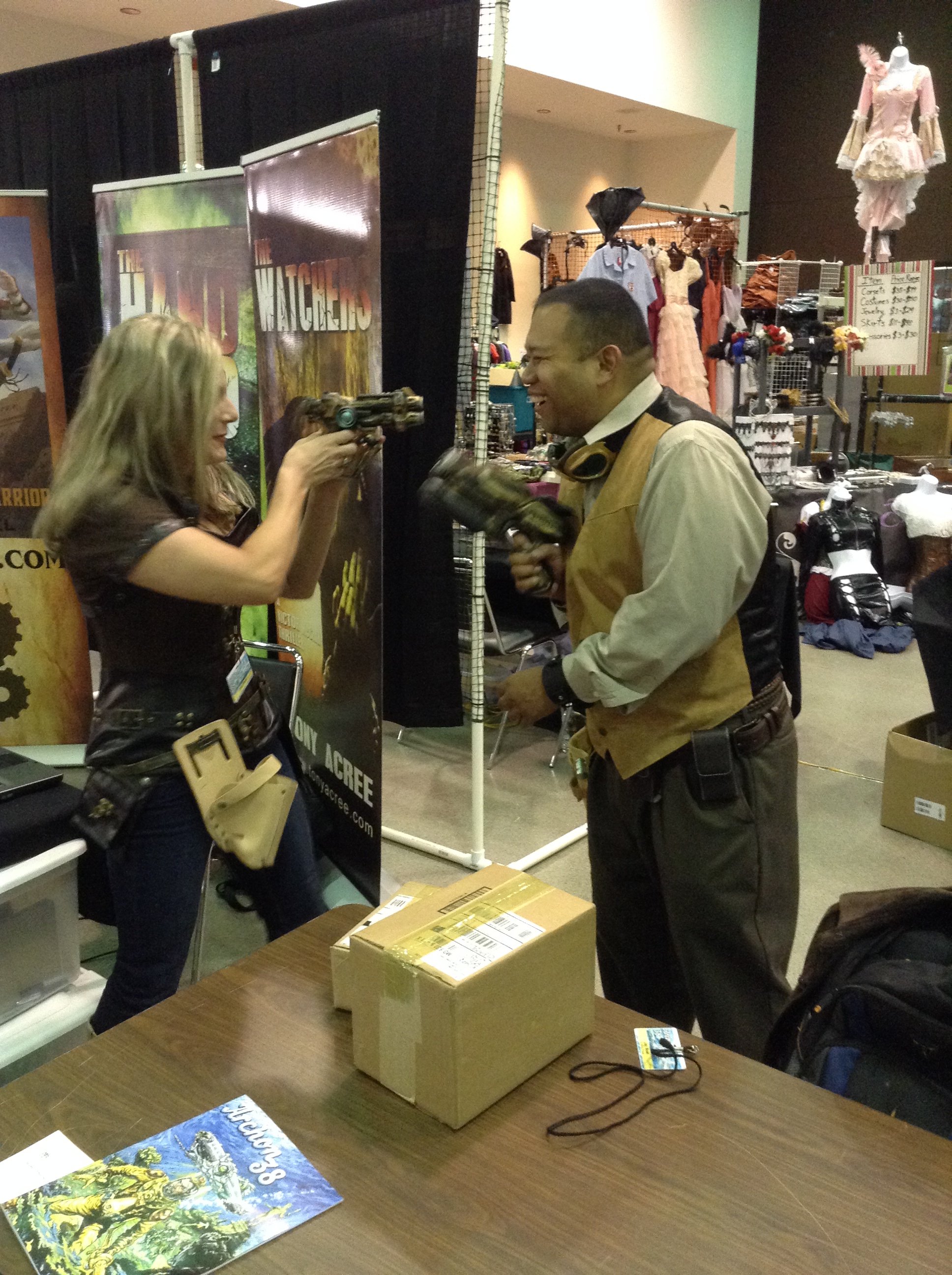 Today at our Archon table, Jay Reyes and I were joined by his lovely wife, Janet. Better known as the “Booth Babe”. When she was at the table, Jay’s sales took off. When she was gone, they slacked. Janet is a blast to have around and she keeps her husband in line.