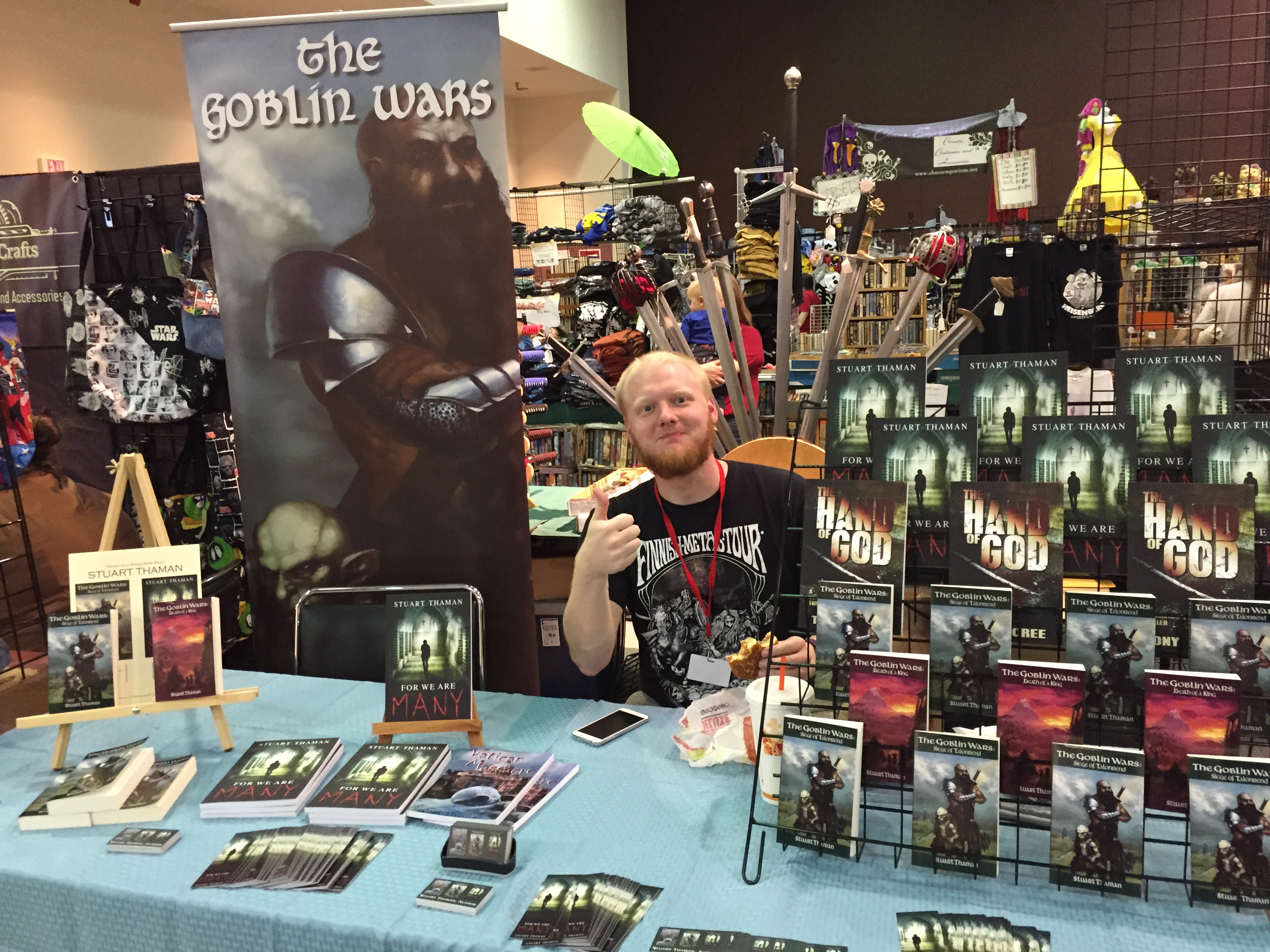 I am once again near St. Louis for Archon 2015. The great thing about conventions like Archon is you see a ton of familiar faces. With this being my third visit to Archon, the faces I recognize are many. I am set up with talented Hydra Publications author, Stuart Thaman and next door to Jay Noel, steampunk author extraordinaire. Added thanks to Roy and Optimus Prime (that’s what his name tag said, but he might be running around as Art) for the new tag line for fans of the series: Vic-tims. Pun intended. And Archon would not be Archon without Cosplay pictures.
